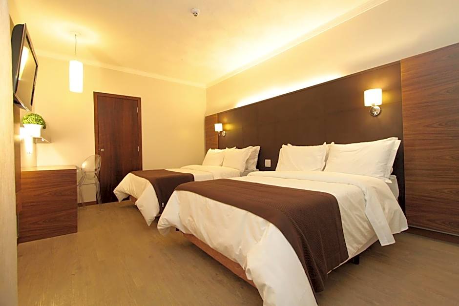 This sophisticated air-conditioned room comes with oak furnishings and two double beds. It offers a 32" LED TV, a digital safe and stocked mini-bar. Wi-Fi free and paid parking.